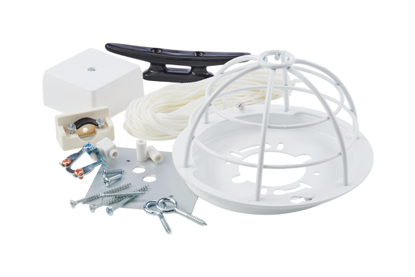 - Cleat (to fix the rope & hang it up; not shown in the figure above)